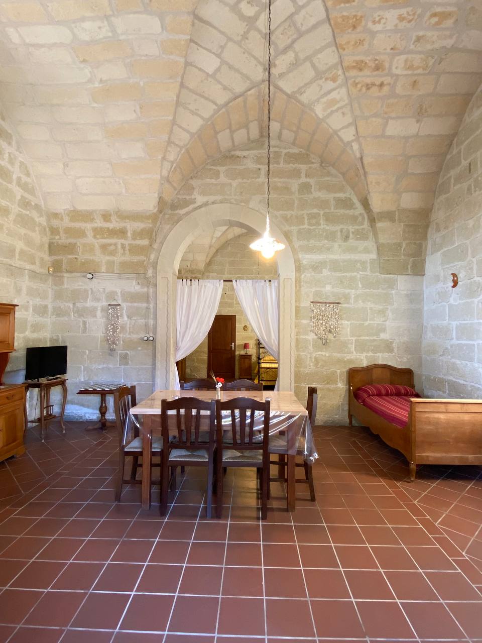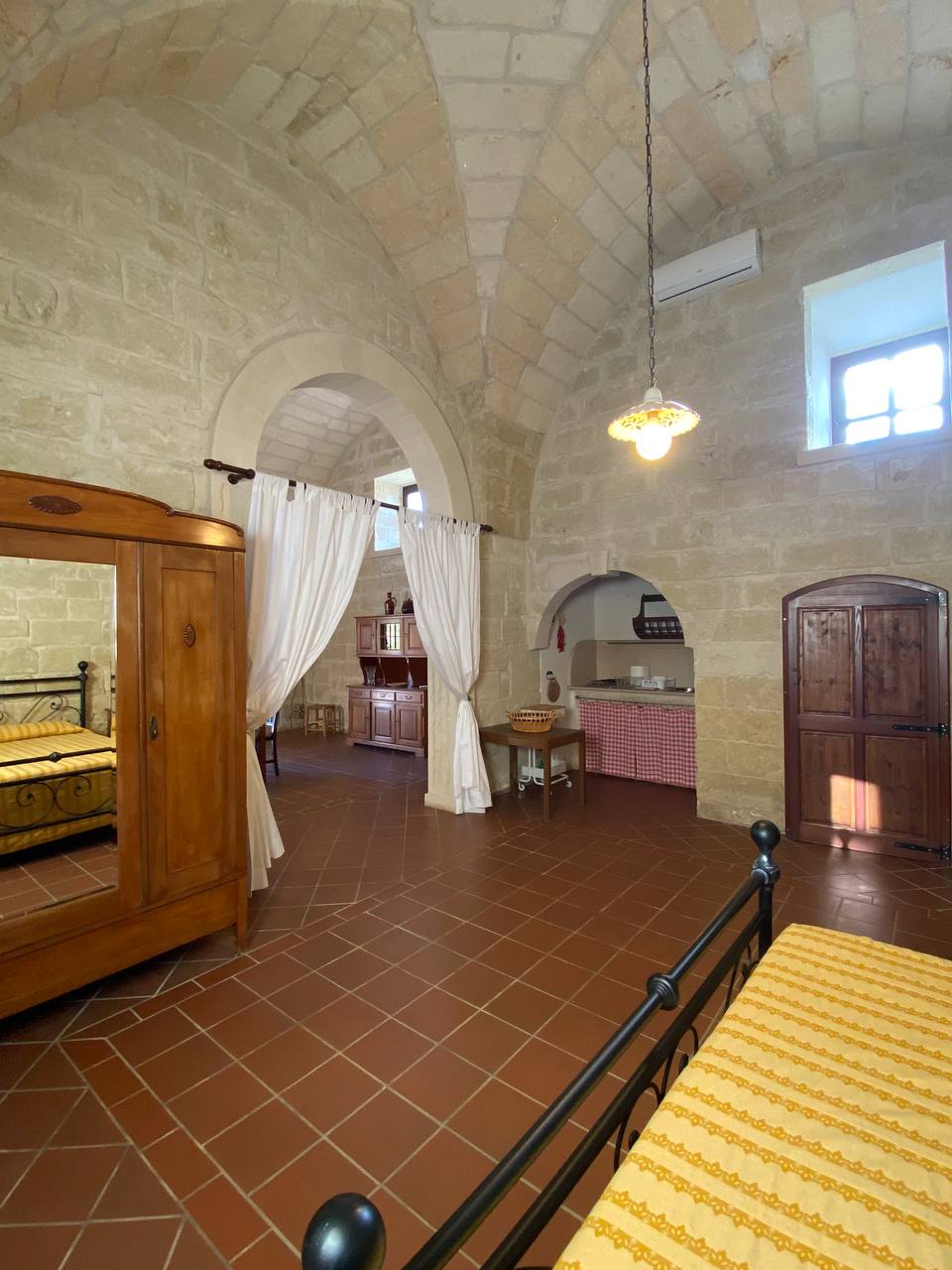 Fully renovated, this apartment preserves the authenticity of its origins thanks to the thick Lecce stone walls and the magnificent original vaulted ceiling—elements that tell the story and tradition of the place.